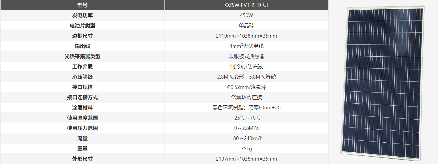 | 产品类型|性能参数 | 平板式太阳能 | PV组件 | PVT组件 |